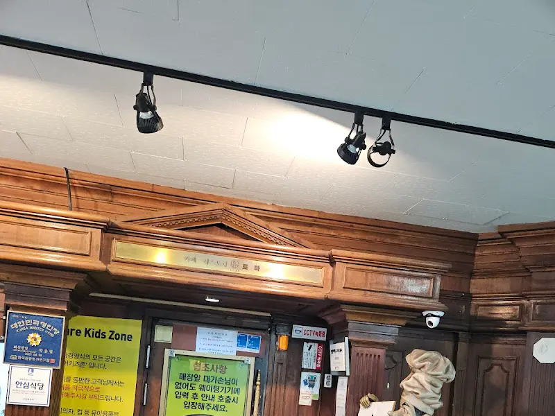 벽에는 낡은 나무 액자들이 빼곡하게 걸려 있고, 짙은 갈색의 목재 인테리어는 세월의 흔적을 고스란히 보여주고 있었다. 촌스럽다기보다는, 오히려 시간이 멈춘 듯한 아늑함이 느껴졌다고나 할까? 테이블마다 놓인 냅킨 케이스와 물컵도 옛날 감성을 그대로 간직하고 있었다. 이런 분위기, 진짜 오랜만이야!