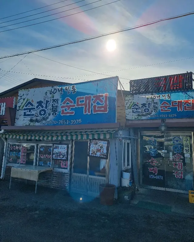 네비게이션이 가리키는 곳에 다다르니, 60년의 세월이 느껴지는 외관이 눈에 띄었어. 파란색 간판에 큼지막하게 쓰여진 “순창 전통 순대집”이라는 문구가 왠지 모르게 믿음직스러웠지. 마치 시간 여행을 떠나온 듯한 기분. 가게 앞에는 넓찍한 주차장이 마련되어 있어 주차 걱정은 넣어둬, 넣어둬.