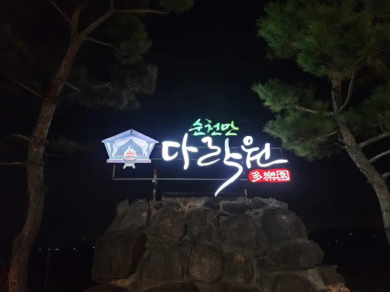 입구부터 남다른 스케일에 압도당했지. “순천만 다락원” 간판이 힙하게 불을 밝히는데, 마치 나를 위한 레드 카펫 같잖아? 밤에 오니 조명 덕에 분위기가 더 사는 느낌. 데이트 코스로도 손색없겠어.