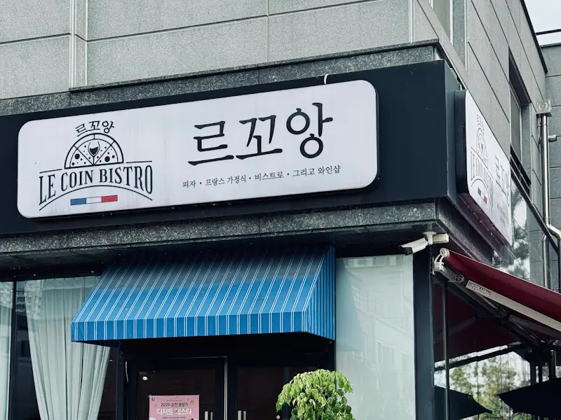 오랜만에 떠나온 순천, 늘 가보고 싶었던 르꼬앙에서의 저녁 식사를 손꼽아 기다렸다. 순천만국가정원의 푸르름을 뒤로하고, 향동 골목길을 따라 걷다 보니 파란 스트라이프 어닝이 드리워진 아담한 건물이 눈에 들어왔다. 마치 프랑스 어느 작은 마을의 비스트로에 온 듯한 착각을 불러일으키는 외관이었다. 검은색 간판에 흰 글씨로 적힌 ‘르꼬앙’이라는 상호와 그 아래 작게 쓰인 ‘피자, 프랑스 가정식 비스트로, 그리고 와인’이라는 문구가 설렘을 더했다.