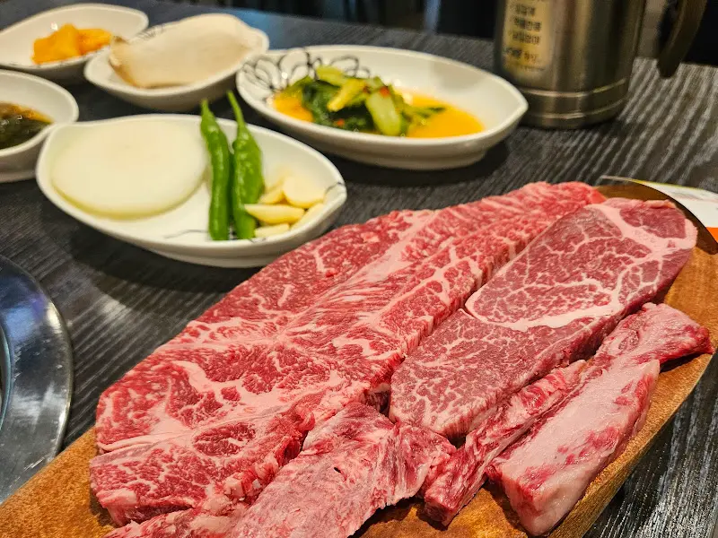 문을 열고 들어서자, 정겨운 분위기가 물씬 풍겼다. 테이블 몇 개가 놓인 아담한 공간은 마치 오랜 친구 집에 놀러 온 듯 편안했다. 테이블에 앉자마자 사장님께서 따뜻한 미소로 맞아주셨다. 첫인상부터가 왠지 모르게 믿음이 갔다. 메뉴판을 펼쳐 들기도 전에, 사장님은 횡성 한우에 대한 자부심을 드러내시며, 오늘 가장 좋은 부위를 추천해주겠다고 하셨다. 숙성고에서 갓 꺼낸 듯한 선홍빛 한우의 마블링은 감탄을 자아내기에 충분했다.