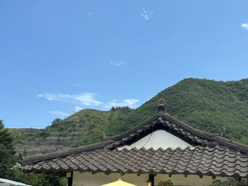 굽이굽이 이어진 길을 따라 도착한 카페는, 과연 소문대로였다. 드넓은 마당을 품은 고풍스러운 한옥이 눈앞에 펼쳐졌다. 푸른 하늘 아래 기와지붕의 곡선이 아름답게 뻗어 있고, 그 뒤로는 초록빛 산자락이 병풍처럼 둘러쳐져 있었다. 마치 시간이 멈춘 듯한 고요함 속에서, 나는 깊은 숨을 쉬며 마음의 평화를 찾았다.
