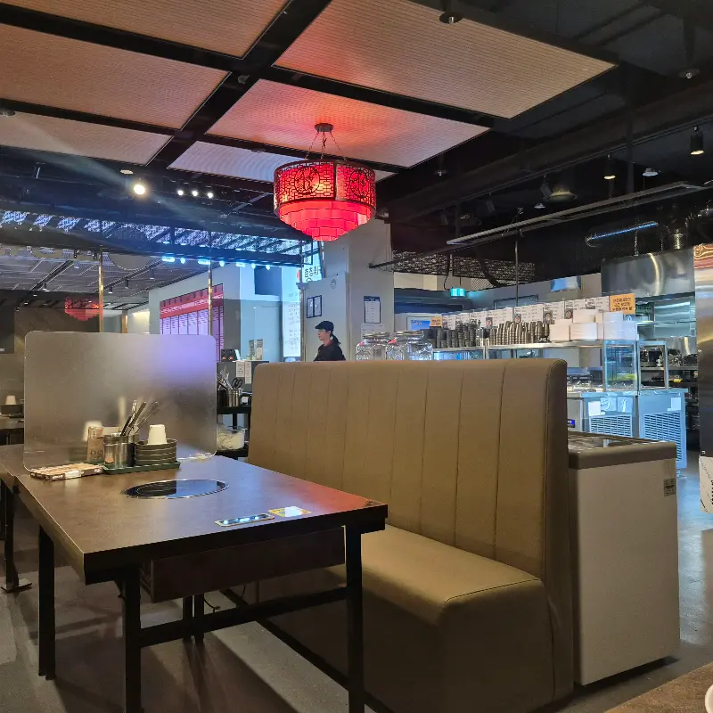 매장 문을 열고 들어선 순간, 넓고 쾌적한 공간이 눈에 들어왔다. 테이블 간 간격도 넉넉해서 편안하게 식사를 즐길 수 있을 것 같았다. 깔끔하게 정돈된 내부와 은은하게 퍼지는 따뜻한 조명이 편안한 분위기를 자아냈다. 마치 잘 정돈된 정원에 들어선 듯한 느낌이랄까. 새 매장이라 그런지 청결함이 돋보였다.