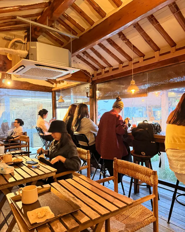 문을 열고 들어서자, 예상대로 공간은 아늑하고 정갈했다. 나무로 짜인 구조와 은은한 조명이 마음을 편안하게 감싸 안았다. 테이블 간 간격이 좁은 편이었지만, 오히려 그 덕분에 북적거리는 활기가 더 생생하게 느껴졌다. 외국인 손님들이 삼삼오오 모여 앉아 담소를 나누는 모습은 마치 내가 한국이 아닌 다른 어느 나라의 작은 빵집에 와 있는 듯한 착각을 불러일으켰다.