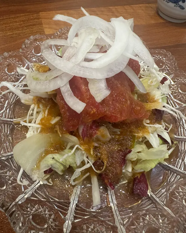 초밥과 함께 제공되는 샐러드 또한 훌륭하다. 신선한 채소와 함께 연어, 참치 등 다양한 해산물이 들어있어 입맛을 돋우는 역할을 한다. 샐러드에 사용되는 소스 또한 직접 개발한 특제 소스라고 한다.