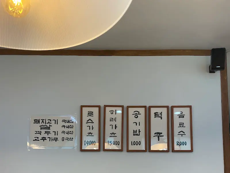 기다림 끝에 드디어 내 차례가 왔다. 문을 열고 들어선 가게는 생각보다 아담했지만, 테이블석과 카운터석이 조화롭게 배치되어 있어 혼밥을 즐기기에도 전혀 부담스럽지 않은 분위기였다. 나는 혼자였기에 자연스럽게 카운터석에 자리를 잡았다. 은은하게 퍼지는 따뜻한 조명 아래, 나무로 된 테이블과 의자가 편안함을 더했다. 벽에는 “돈카츠는 고기 맛입니다”라는 문구가 눈에 띄었다. 이 문구에서 왠지 모를 자부심과 진정성이 느껴졌다.