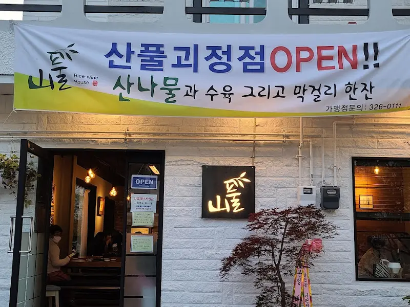 퇴근 후, 왠지 모르게 몸도 마음도 지쳐 있던 어느 날 저녁. 텁텁한 기분을 씻어내고 싶어 건강하고 신선한 음식을 찾아 나섰다. 문득 떠오른 곳은 괴정에 위치한 ‘산풀’. 평소 웰빙 음식에 관심이 많았던 터라, 산나물과 수육의 조합이라는 문구에 이끌려 방문하게 되었다. 발걸음을 옮기는 내내, 싱그러운 쌈 채소와 향긋한 막걸리 한 잔이 간절하게 떠올랐다.