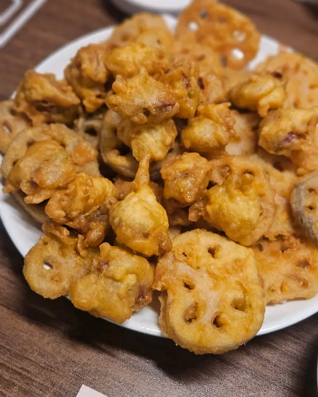 연근 튀김을 한 입 베어 물었다. 바삭하는 소리와 함께, 고소한 기름 향이 입안 가득 퍼졌다. 연근 특유의 아삭한 식감과 튀김의 바삭함이 어우러져, 정말 훌륭한 맛을 만들어냈다. 닭똥집 튀김 역시 쫄깃한 식감이 일품이었다. 튀김옷도 느끼하지 않고 담백해서, 계속 손이 갔다.