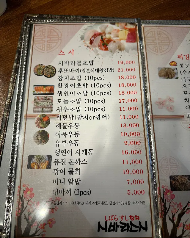 고민 끝에 저는 이곳의 대표 메뉴인 모듬 초밥과 함께, 싱싱한 연어 초밥, 그리고 따뜻한 어묵 우동을 주문했습니다. 특히, 시바라스시는 재료의 신선함이 뛰어나다는 평이 많았기에, 그 맛을 직접 느껴보고 싶었습니다. 잠시 후, 정갈하게 담긴 초밥과 우동이 테이블 위에 놓였습니다.