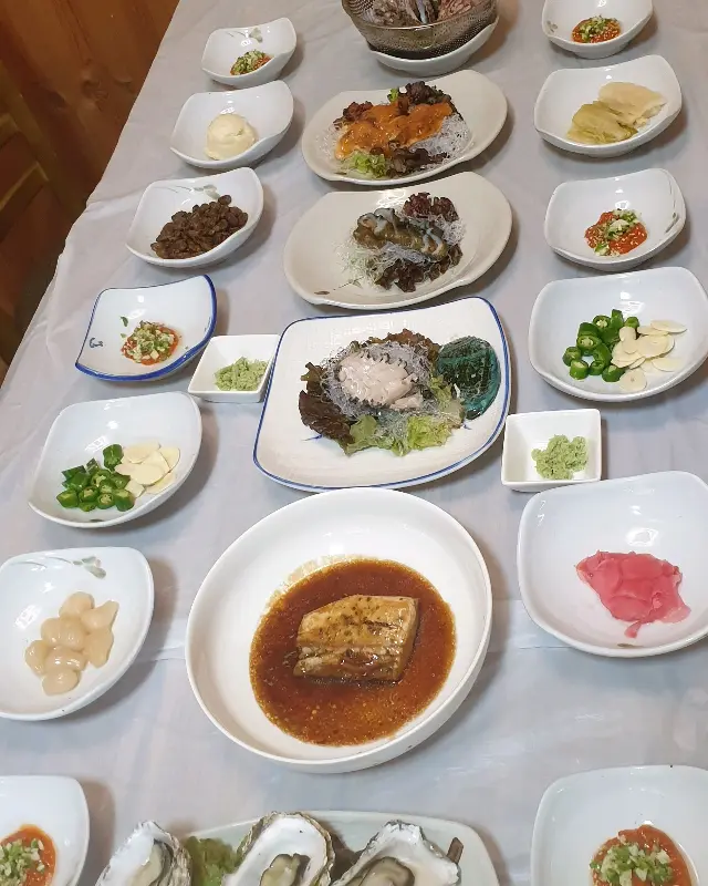 메뉴를 고르기 전, 먼저 차려진 스끼다시의 향연은 과연 탄성을 자아낼 만했다. 뽀얀 속살을 드러낸 굴은 신선함 그 자체였고, 윤기가 흐르는 고등어 구이는 짭짤하면서도 고소한 풍미가 일품이었다. 멍게의 향긋한 바다 내음은 입안 가득 퍼져 나갔고, 꼬득꼬득한 식감의 해삼은 씹을수록 깊은 바다의 맛을 선사했다. 이처럼 다채로운 스끼다시들은 하나하나 정갈하게 담겨 나왔는데, 어른들과 함께 식사하기에 더할 나위 없이 좋겠다는 생각이 들었다.
