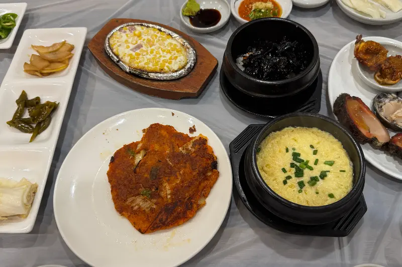 따뜻한 온기가 느껴지는 미역국은 깊고 시원한 맛이 일품이었다. 짭조름하면서도 감칠맛 나는 간장게장은 밥 한 공기를 순식간에 비우게 만들었다. 톡톡 터지는 식감이 즐거운 콘치즈는 달콤함으로 입안을 가득 채웠다. 신선한 해산물을 맛볼 수 있는 돌멍게는 바다 내음이 물씬 풍겼다. 이 외에도 샐러드, 튀김, 계란찜 등 다양한 밑반찬들이 풍성하게 제공되어, 메인 요리가 나오기 전부터 만족감을 느낄 수 있었다.