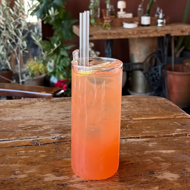 주문 후 잠시 기다리는 동안, 식전 빵이 나왔어. 따뜻하고 부드러운 빵을 입에 넣으니 정말 맛있더라. 빵과 함께 나온 발사믹 소스도 훌륭했어. 빵을 순식간에 해치우고 나니, 드디어 기다리던 메뉴들이 하나씩 나오기 시작했어. 먼저 나온 건 트로피컬 에이드였는데, 컵에 담긴 모습이 너무 예뻤어. 쨍한 오렌지 색깔이 보기만 해도 기분이 좋아지더라.