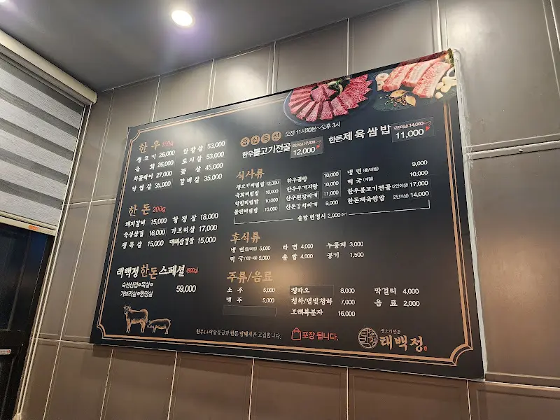 팔공산 자락, 싱그러운 바람이 불어오는 길을 따라 드라이브를 즐기다 보니 어느새 목적지에 가까워졌다. 오늘 나의 발길을 이끈 곳은 바로 소고기와 돼지갈비 맛집으로 소문난 ‘태백정’. 평소 아이들과 함께 외식할 장소를 고르는 일이 쉽지 않았는데, 이곳은 아이들을 위한 놀이 시설까지 완비되어 있다고 하니 기대감이 컸다. 주차장에 차를 대고 내리니, 넓은 공간과 깔끔한 외관이 눈에 들어왔다. 얼른 안으로 들어가 맛있는 식사를 즐기고 싶어 발걸음을 재촉했다.
