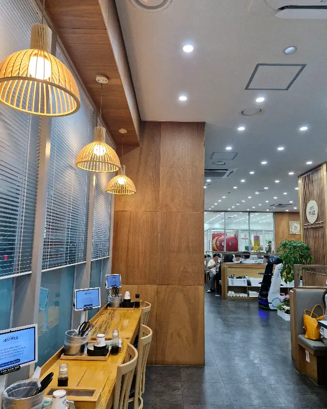 매장 문을 열고 들어서자, 생각보다 훨씬 넓고 쾌적한 공간이 펼쳐졌다. 높은 천장과 은은한 조명 덕분에 답답함 없이 편안한 분위기가 느껴졌다. 나무 소재를 많이 사용하여 전체적으로 따뜻하고 안정적인 느낌을 주었고, 테이블 간 간격도 넉넉해서 옆 테이블 손님들과 불필요한 소음 공해에 시달릴 일도 없어 보였다.
