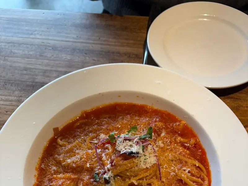 포크로 면을 돌돌 말아 한 입 맛보니, 입 안 가득 퍼지는 새콤달콤한 토마토 소스의 풍미가 일품이었다. 면도 적당히 잘 삶아져서 쫄깃한 식감이 살아있었다. 특히, 탱글탱글한 새우는 정말 최고였다. 씹을 때마다 톡톡 터지는 식감과 고소한 새우의 풍미가 입 안 가득 퍼졌다. 이 집, 정말 새우에 진심이구나!