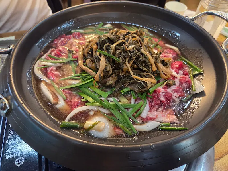 일반 불고기랑은 차원이 달라. 부드러운 불고기에 시래기의 구수한 맛이 더해지니까 진짜 환상의 조합이더라고. 육수도 어찌나 시원하고 깊은지, 계속 숟가락으로 퍼먹게 되더라니까. 솔직히 시래기 불고기라는 조합 자체가 처음이라 살짝 걱정했는데, 괜한 걱정이었어.