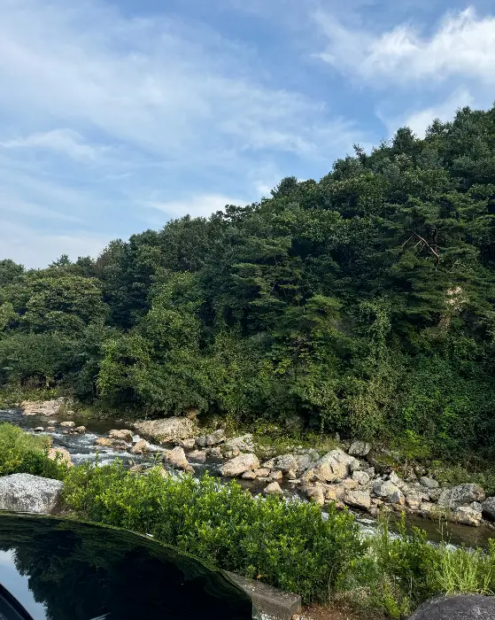 처음 카페에 들어설 때 문을 열자마자 확 퍼지는 은은한 커피 향기에 정신이 번쩍 들었어요. 마치 향수 뿌린 듯 고급스럽달까? 주변 풍경이 너무 예뻐서 ‘와, 사진으로 담아도 다 못 담을 것 같다!’ 싶었죠. 통창으로 보이는 계곡과 산의 조화가 정말 그림 같더라고요. 특히 계곡 물소리가 얼마나 잔잔하고 듣기 좋던지, 마치 자연이 선사하는 ASMR 같았어요. 물소리만 듣고 있어도 마음이 편안해지고, 절로 힐링이 되는 기분이었죠.