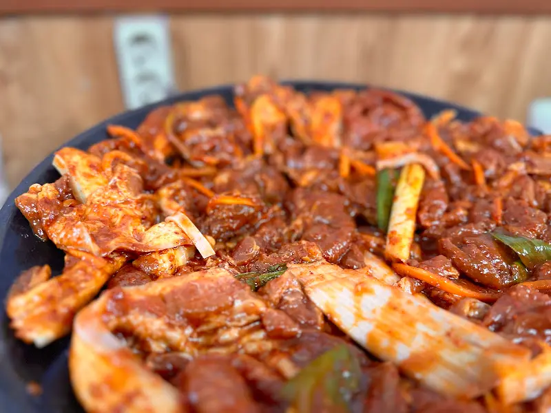 매콤한 양념에 버무려진 돼지 주물럭은 보기만 해도 군침이 돈다.