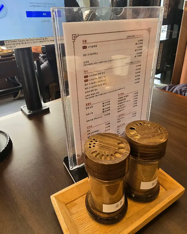 매장에 들어서자, 넓고 깔끔한 인테리어가 눈에 띄었다. 마치 잘 정돈된 실험실 같은 느낌이랄까? 테이블 간 간격도 넉넉해서 편안하게 식사에 집중할 수 있는 환경이었다. 벽면에는 은은한 조명이 비추고 있었는데, 그 따뜻한 색온도가 심리적인 안정감을 주는 듯했다. 자리에 앉아 메뉴판을 스캔했다. 순대국, 고사리해장국, 편백 모둠 수육, 직화 오징어볶음 등 다양한 메뉴들이 나열되어 있었다. 하지만 나의 목표는 명확했다. 바로 ‘고시순대국’과 이 집의 숨겨진 ‘맛집’ 무기인 고사리의 콜라보를 탐구하는 것.
