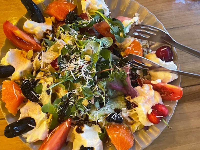 고민 끝에, 가장 먼저 신선한 야채와 과일이 듬뿍 들어간 샐러드를 주문했다. 을 보면 알 수 있듯, 접시 위에는 다채로운 색감의 향연이 펼쳐져 있었다. 토마토의 붉은 빛, 오렌지의 상큼한 주황색, 블랙 올리브의 깊고 진한 검은색… 싱그러운 채소들은 섬세하게 손질되어, 마치 예술 작품을 감상하는 듯한 기분이었다. 샐러드 위에 살포시 내려앉은 하얀 치즈는 부드러운 풍미를 더해주었고, 발사믹 글레이즈는 전체적인 맛의 균형을 잡아주었다. 입안 가득 퍼지는 신선함은, 마치 자연을 그대로 옮겨 놓은 듯했다.
