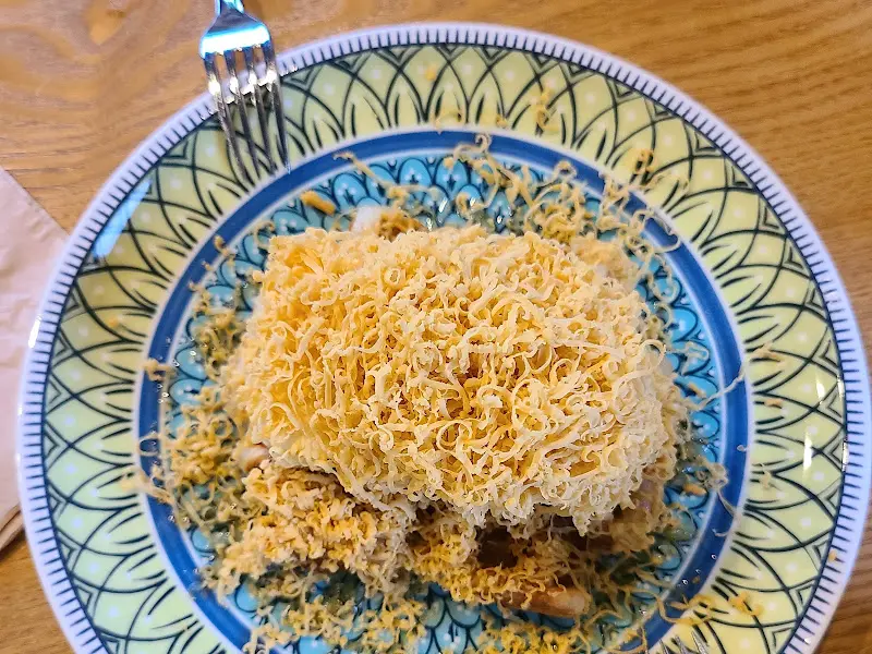 1988커피 로스터스의 크로플은, 사진으로만 봐도 그 특별함을 짐작할 수 있었습니다. 겉은 바삭하고 속은 촉촉한 크로플 위에, 부드러운 아이스크림과 독특한 토핑이 듬뿍 올려져 있었습니다. 특히, 크로플 위에 뿌려진 ‘실타래’ 모양의 토핑은, 흔히 볼 수 없는 비주얼로 저의 호기심을 자극했습니다. 마치 예술 작품을 감상하는 듯한 기분으로 크로플을 맛보았습니다.