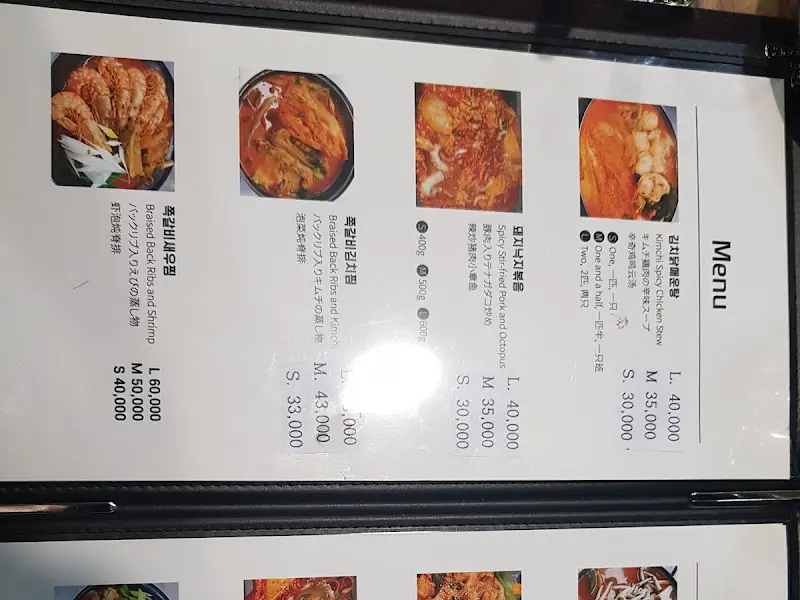 메뉴판을 스캔하니 묵은지 닭볶음탕이 메인,