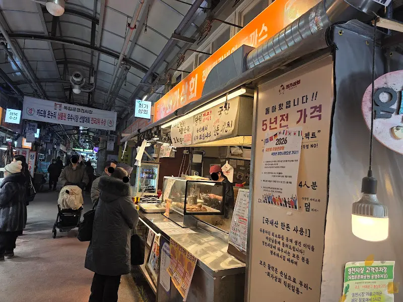 퇴근하자마자 냅다 달려간 곳은 바로 영천시장! 어릴 적 외숙모 손잡고 왔던 기억이 어렴풋이 나는 떡갈비집이 있다길래, 그 추억의 맛을 찾아 나섰다. 시장 입구부터 활기가 넘치는 게, 괜히 기분까지 들뜨는 거 있지? 사람들 틈을 헤치고 드디어 ‘최가상희’ 간판 발견! 캬, 저 주황색 간판, 왠지 모르게 정겹다.