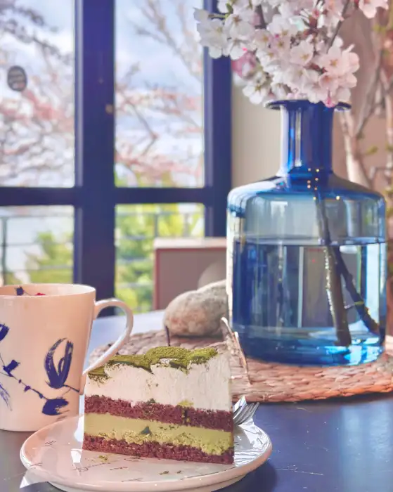 이와 함께 주문한 케이크는 겉보기에도 훌륭했지만, 입안에 넣는 순간 그 섬세한 맛의 레이어에 감탄했다. 촉촉한 시트와 부드러운 크림, 그리고 위에 뿌려진 초콜릿 크럼블의 조화는 마치 성공적인 유기 합성에 비유할 수 있었다. 각 재료의 질량, 온도, 그리고 첨가 비율이 완벽하게 계산되어 나온 결과물이었다. 녹차 시트의 쌉싸름한 맛과 크림의 달콤함이 만나 만들어내는 맛의 스펙트럼은 입안에서 다채로운 실험 결과를 보여주는 듯했다.