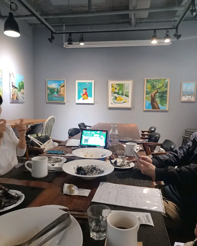 식사를 마치고, 그림들을 감상하며 소화도 시킬 겸 매장을 둘러봤어. 그림들이 주기적으로 바뀐다고 하니, 올 때마다 새로운 작품을 감상할 수 있다는 점도 매력적이야. 마치 새로운 앨범이 나올 때마다 기대하는 팬들의 마음이랄까?