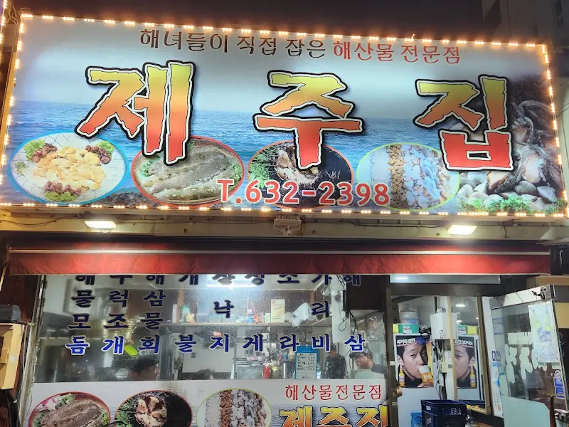 해녀들이 직접 잡은 해산물 전문점이라는 문구가 눈에 띄는 제주집 간판
