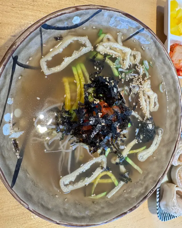 함께 나온 김치와 단무지를 곁들여 먹으니, 느끼함도 잡아주고 더욱 맛있게 즐길 수 있었다. 특히 잘 익은 김치는 냉국수의 시원함을 더욱 극대화해주는 역할을 했다. 혼자 먹는 밥이지만, 전혀 외롭지 않았다. 맛있는 음식이 내 곁에 있으니!