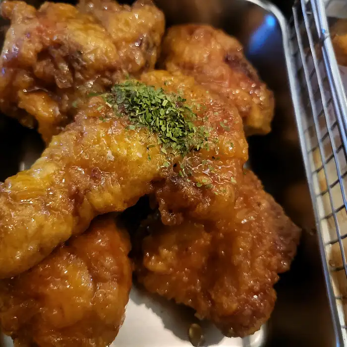 가장 먼저 저희 테이블에 나온 건, 역시 이 집의 자랑이라는 치킨이었어요. 겉보기에도 아주 노릇노릇하게 잘 튀겨져서, 보기만 해도 군침이 돌더라고요. 한 조각 집어 들었더니, 튀김옷이 얼마나 바삭한지 손끝으로 그 소리가 느껴질 정도였어요. 한 입 베어 물자마자, ‘바삭!’하는 경쾌한 소리와 함께 입안 가득 퍼지는 고소함이란. 아이고, 이 맛 좀 봐라! 겉은 물론이고 속살은 얼마나 촉촉하고 부드러운지, 입에서 스르륵 녹아내리는 것 같았어요. 옛날 엄마가 튀겨주시던 그 맛, 아니 그 이상이었어요.