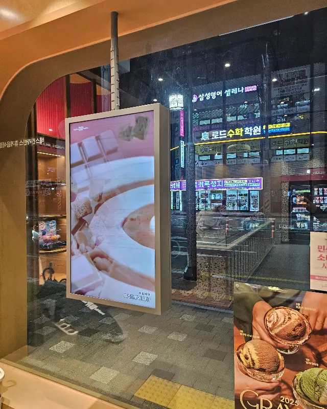 매장 앞에 딱 도착했는데, 핑크빛 간판이 멀리서부터 눈에 확 들어오는 거 있지? 뭔가 동화 속에 들어온 기분이랄까? 밖에서 보이는 쇼윈도에는 신제품 광고 영상이 계속 흘러나오는데, 발길을 멈추고 넋 놓고 보게 되더라. 아니, 아이스크림 비주얼이 이렇게까지 예쁠 일이야? 이건 맛이 없을 수가 없겠다 싶었다.