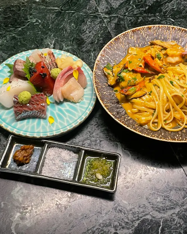 메뉴판을 펼치니, 사시미, 초밥, 파스타 등 다양한 메뉴들이 눈길을 사로잡았다. 특히 ‘고등어 봉초밥’은 이곳의 시그니처 메뉴라기에 망설임 없이 주문했다. 곁들일 술로는 하이볼을 선택했다. 잠시 후, 눈 앞에 펼쳐진 음식들은 그야말로 예술 작품이었다. 싱싱한 사시미는 윤기가 흐르고, 고등어 봉초밥은 김으로 곱게 감싸져 있었다. 하이볼은 황금빛 액체가 투명한 잔 속에서 영롱하게 빛나고 있었다.