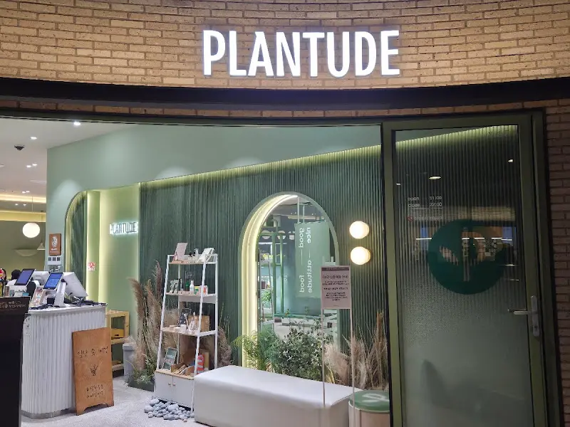 아이파크몰은 워낙 복잡해서 길을 좀 헤맸다. 푸드코트처럼 여러 식당이 모여있는 7층 테이스트 파크를 지나, 영화관 쪽으로 쭉 들어가니 드디어 플랜튜드가 눈에 들어왔다. 멀리서 봐도 깔끔하고 모던한 분위기가 느껴지는 외관. 은은한 조명과 초록색 식물 장식이 편안함을 더해주는 공간이었다. 간판에는 “PLANTUDE”라는 흰색 글자가 심플하게 적혀 있었다. 뭔가 도시 속 오아시스 같은 느낌이랄까?