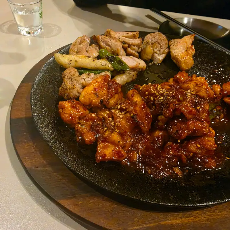 이건 꼭 알아야 해요. 천만호프의 시그니처라고 할 수 있는 닭구이는 꼭 드셔보시길 권합니다. 소금구이 베이스로 구워낸 닭고기는 껍질은 쫄깃하고 속살은 육즙을 가득 머금고 있어 소금에 살짝만 찍어 먹어도 감칠맛이 폭발합니다. 함께 제공되는 꽈리고추와 떡은 식감의 변주를 주어 먹는 재미를 더해주죠.