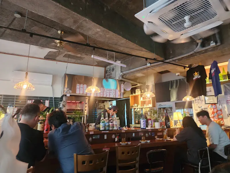입구부터 풍기는 분위기가 장난 아니다. 은은한 조명 아래 나무 테이블과 의자가 놓여있고, 벽에는 일본 술 포스터와 아기자기한 소품들이 가득했다. 천장에는 빈티지한 느낌의 조명이 따뜻하게 빛나고 있었다. 마치 일본 현지 이자카야에 온 듯한 착각이 들 정도. 이런 분위기, 정말 너무 좋다.