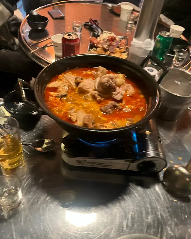 드디어 기다리고 기다리던 김치찜이 나왔다. 큼지막한 뚝배기에 담겨 나온 김치찜은 보기만 해도 군침이 돌았다. 잘 익은 김치와 푸짐한 돼지고기가 먹음직스럽게 담겨 있었고, 따뜻한 김이 코끝을 간지럽혔다. 김치찜 국물을 한 입 맛보는 순간, 감탄사가 절로 나왔다. 깊고 진한 김치 맛과 돼지고기의 풍미가 완벽하게 어우러져 잊을 수 없는 맛을 선사했다. 돼지고기는 잡내 하나 없이 부드러웠고, 김치는 입 안에서 사르르 녹는 듯했다.