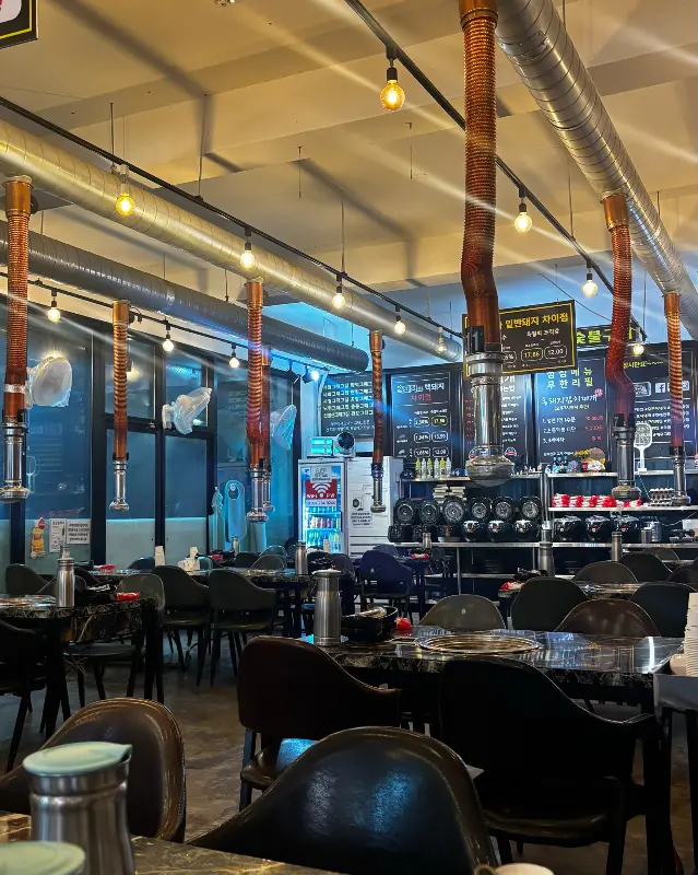 문을 열고 들어서자, 넓고 쾌적한 공간이 눈에 확 들어왔어. 테이블 간 간격도 넉넉해서 편안하게 식사를 즐길 수 있겠더라. 환풍시설도 잘 되어 있는지, 옷에 냄새 밸 걱정은 No No! 테이블마다 놓인 불판이 마치 힙합 스테이지 같았어. 오늘 제대로 랩 배틀 벌여볼까나? 후끈한 열기가 벌써부터 느껴지는 듯했어.