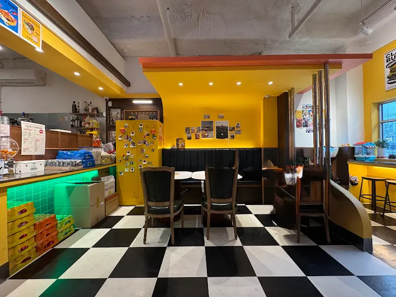 매장 문을 열고 들어서는 순간, “와!” 하는 감탄사가 절로 나왔어. 블랙 앤 화이트의 바닥 타일이 눈에 띄고, 노란색 벽이 포근한 느낌을 줬지. 전체적으로 힙하면서도 아늑한 분위기랄까? 특히, 테이블마다 놓인 작은 소품들이 센스 있더라. 이런 분위기, 너무 좋아! 마치 내가 좋아하는 미드에 나오는 다이너에 온 듯한 기분이었어.