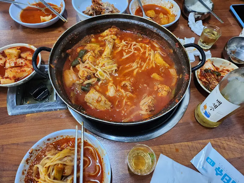 다음 타자는 닭볶음탕! 닭한마리랑은 또 다른 매력이 있었다. 와 에서 보이는 것처럼, 매콤한 양념이 닭고기에 쏙 배어 있어서 진짜 밥도둑이었다. 닭볶음탕에도 칼국수 사리 2인분 추가해서 먹었는데, 국물이 넉넉해서 진짜 좋았다. 칼국수 면에 매콤한 양념이 絡み合って… 아, 진짜 말해 뭐해. 그냥 드셔보세요.