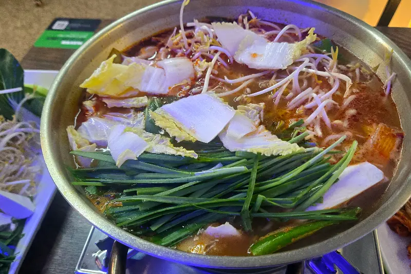 매운 닭한마리 샤브 칼국수: 얼큰한 국물을 좋아하는 사람들을 위해 매운 닭한마리 샤브 칼국수도 준비되어 있다. 가격은 닭한마리 샤브 칼국수와 동일하게 1인분에 13,000원이다. 맑은 닭 육수에 매운 양념이 더해진 매운 닭한마리 샤브 칼국수는 보기만 해도 침샘을 자극하는 붉은 빛깔을 자랑한다. 국물을 한 입 맛보니, 칼칼하면서도 깊은 맛이 느껴졌다. 캡사이신으로 인위적인 매운 맛을 낸 것이 아니라, 고추와 다양한 양념을 사용하여 자연스럽고 깔끔한 매운 맛을 냈다. 땀을 뻘뻘 흘리면서도 멈출 수 없는 중독적인 맛이었다. 닭고기와 야채를 매운 국물에 푹 담가 먹으니, 스트레스가 확 풀리는 기분이었다. 매운 음식을 잘 못 먹는 사람들을 위해 맵기 조절도 가능하다고 하니, 주문 전에 미리 문의하는 것이 좋다.