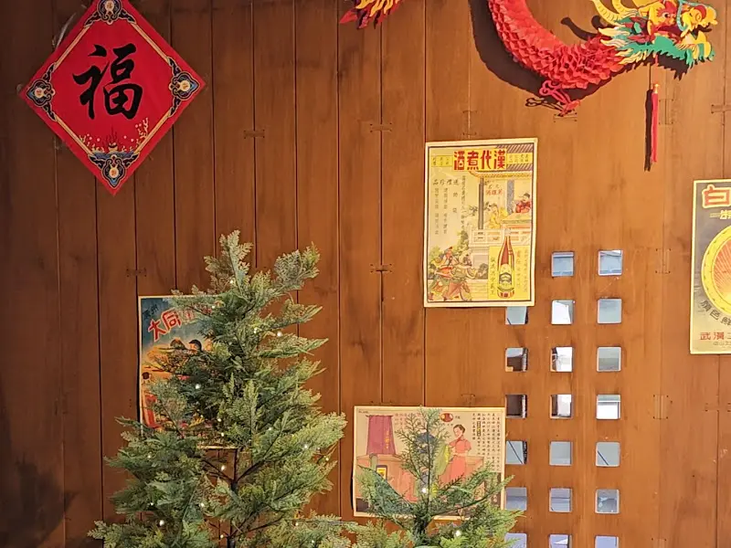 실내는 고급스러우면서도 아늑한 분위기가 감돌았다. 크리스마스 시즌이라 그런지, 은은한 캐럴이 공간을 부드럽게 채우고 있었다. 벽면에는 붉은 용 장식과 복을 기원하는 듯한 그림이 걸려 있어 이국적인 정취를 더했다. 테이블 간 간격도 넓어 편안하게 식사를 즐길 수 있을 것 같았다.