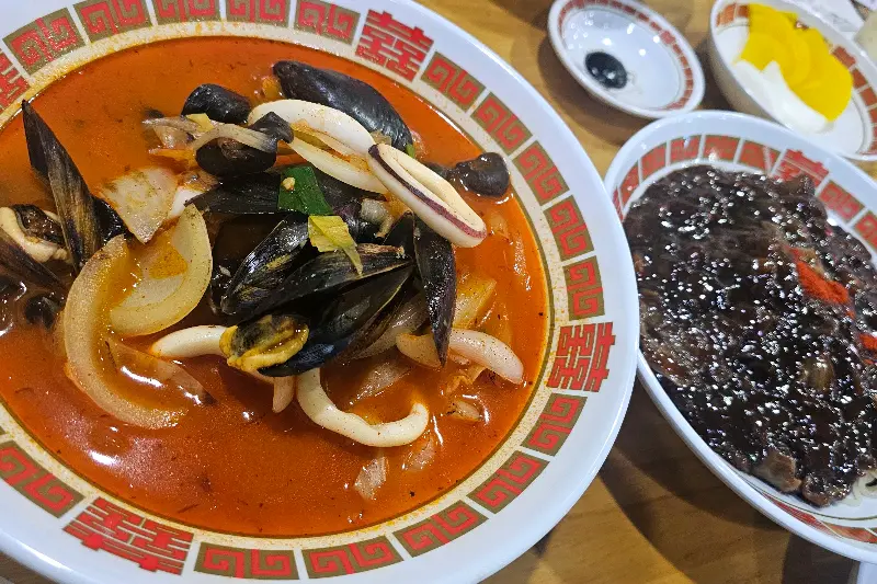 솔직히 짬뽕은 기대 안 했는데, 여기 짬뽕 맛집이라고 해도 될 정도로 맛있었어. 을 보면 짬뽕 국물이 진짜 진해 보이는 거 있지? 해산물도 어찌나 신선한지, 쫄깃쫄깃한 식감이 살아있더라. 특히 오징어는 진짜 탱글탱글해서 입안에서 춤추는 느낌! 조미료 맛이 강하지 않고, 자연스러운 시원한 맛이 나서 좋았어.