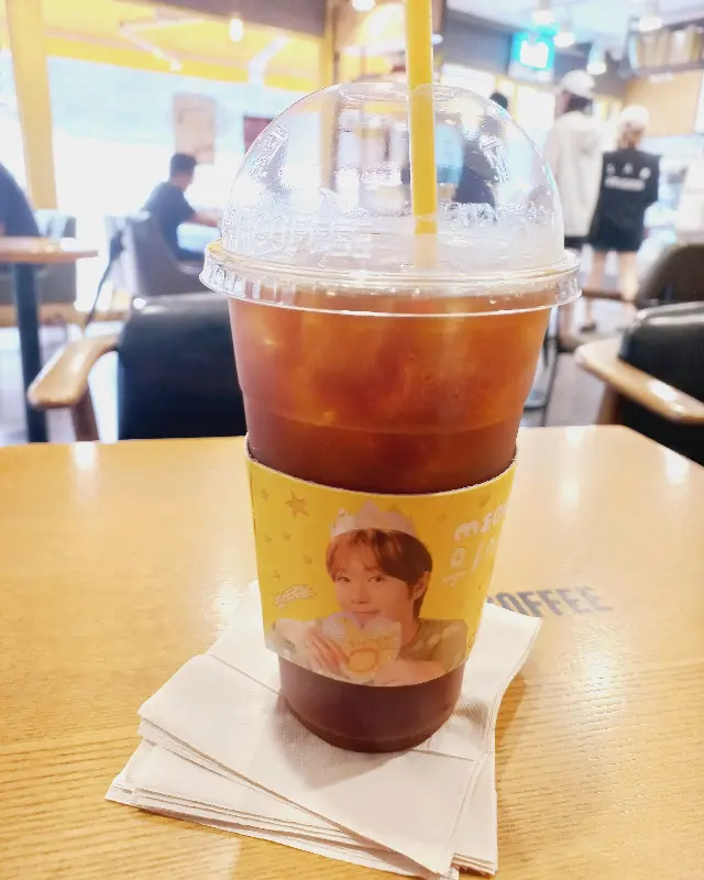 가장 먼저 맛본 것은 이곳의 대표 메뉴라고 할 수 있는 아메리카노. 큼지막한 컵에 담겨 나오는 아메리카노는 보기만 해도 시원했다. 첫 모금을 마시는 순간, 쌉쌀하면서도 깔끔한 맛이 입안 가득 퍼져 나갔다. 특히 운전하면서 마시기에 딱 좋은 사이즈라는 생각이 들었다. 가격은 단돈 1,500원! 이 가격에 이런 퀄리티의 커피를 맛볼 수 있다니, 정말 놀라울 따름이다. 사진에서 보이는 것처럼 컵홀더 디자인도 귀엽다.