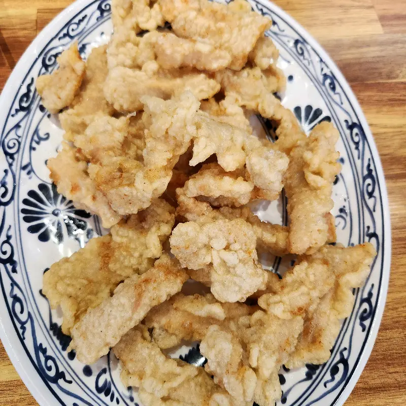 마지막으로 등장한 메뉴는 연중반점의 숨겨진 보석, 고기튀김입니다. 겉은 바삭하고 속은 촉촉한, 이른바 ‘겉바속촉’의 정석을 보여주는 튀김이었습니다. 160도에서 일어나는 마이야르 반응 덕분에 튀김옷은 황금빛 갈색으로 변했고, 표면에는 바삭한 크러스트가 형성되었습니다. 돼지고기 등심은 적당한 지방과 살코기의 비율을 유지하여, 씹을 때마다 육즙이 터져 나왔습니다. 튀김 자체의 맛도 훌륭했지만, 함께 제공되는 소금에 살짝 찍어 먹으니, 돼지고기의 풍미가 더욱 살아나는 듯했습니다. 탕수육 소스 추가 판매에 대한 요구가 있을 정도인데, 튀김 자체의 완성도가 워낙 높아서 소스 없이도 충분히 훌륭했습니다.