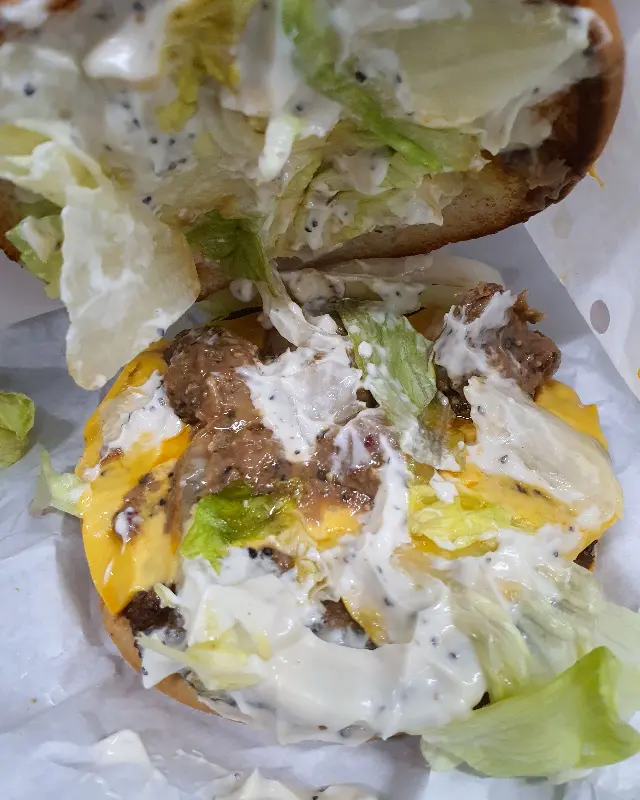 드디어 기다리고 기다리던 뉴욕스테이크버거가 나왔다. 버거를 감싼 종이 포장지를 조심스럽게 뜯으니, 큼지막한 스테이크 패티와 신선한 야채, 그리고 녹아내린 치즈가 눈앞에 펼쳐졌다. 윤기가 자르르 흐르는 빵은 보기만 해도 식욕을 자극한다.