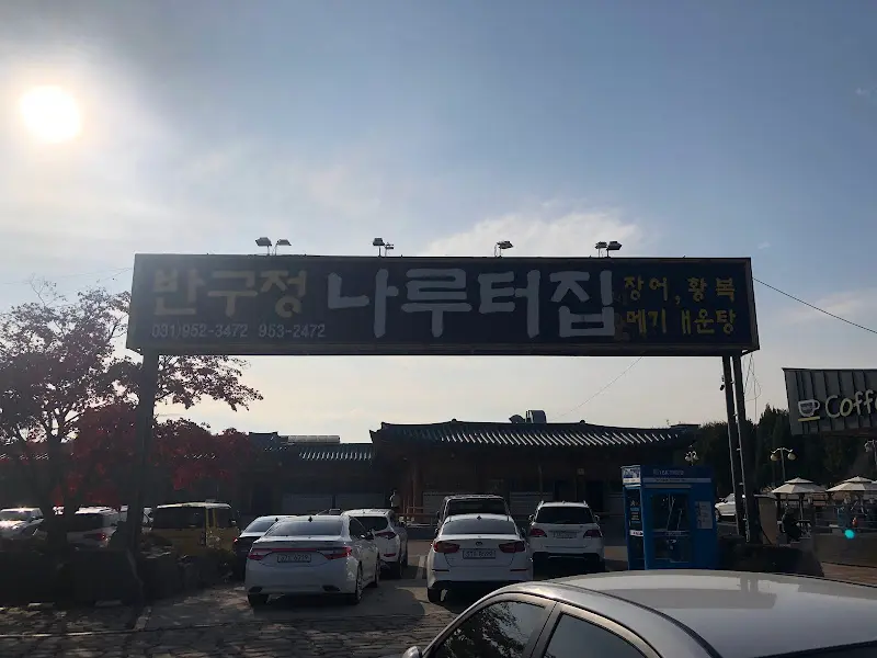 캬… 들어가는 입구부터 스케일이 남다르다. 큼지막한 간판이 딱! “반구정 나루터집”이라고 쓰여 있는데, 왠지 모르게 압도되는 느낌. 주차장도 엄청 넓어서 주차 걱정은 1도 없겠다. 에서 보듯이, 간판 뒤로 보이는 한옥 스타일의 건물도 완전 기대감을 증폭시킨다. 드디어 맛집 탐험 시작이다!