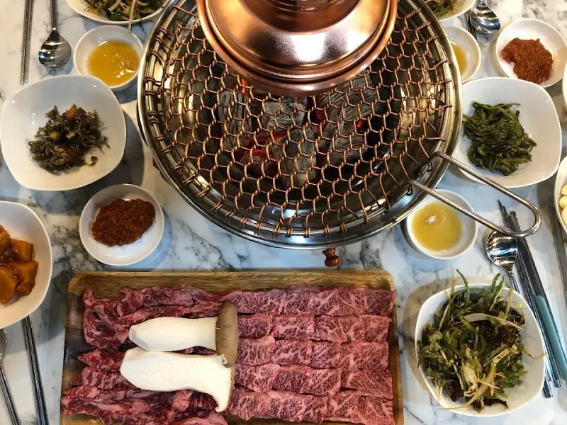 자리에 앉자마자 고민할 것도 없이 한우 갈비를 주문했어. 숯불이 들어오고, 곧이어 밑반찬들이 쫙 깔리는데, 와… 역시 이 집은 밑반찬부터가 남다르다니까. 싱싱한 쌈 채소는 기본이고, 직접 농장에서 재배했다는 참기름으로 버무린 나물 무침은 진짜 예술이야. 꼬소한 향이 코를 찌르는데, 침이 꼴깍 넘어가지 않을 수가 없지.
