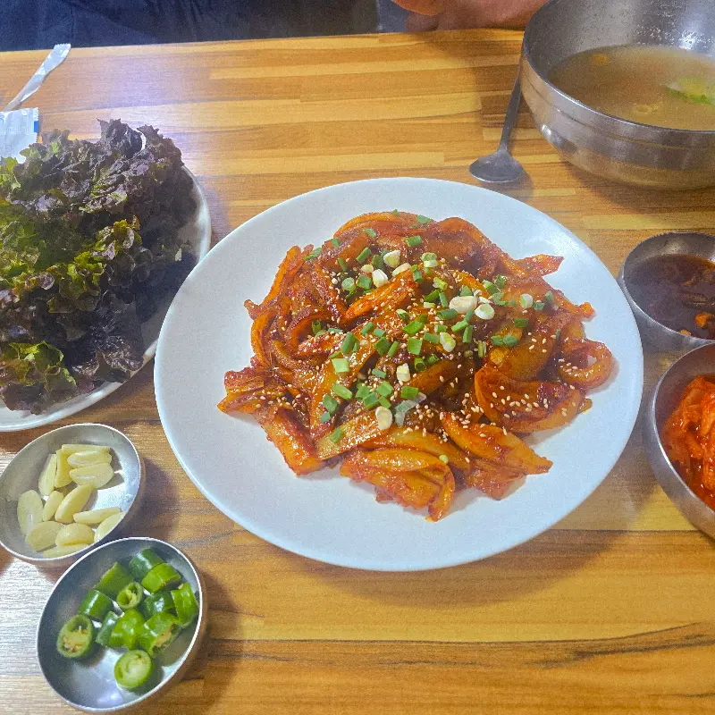 첫 입에 느껴지는 것은 환상적인 식감이었다. 겉은 쫄깃하면서도 속은 부드러운, 완벽한 조화였다. 매콤하면서도 달콤한 양념은 껍데기의 풍미를 한층 끌어올렸다. 과하지 않은 매운맛은 남녀노소 누구나 즐길 수 있을 것 같았다. 껍데기 특유의 잡내는 전혀 느껴지지 않았고, 신선함이 그대로 전해졌다.